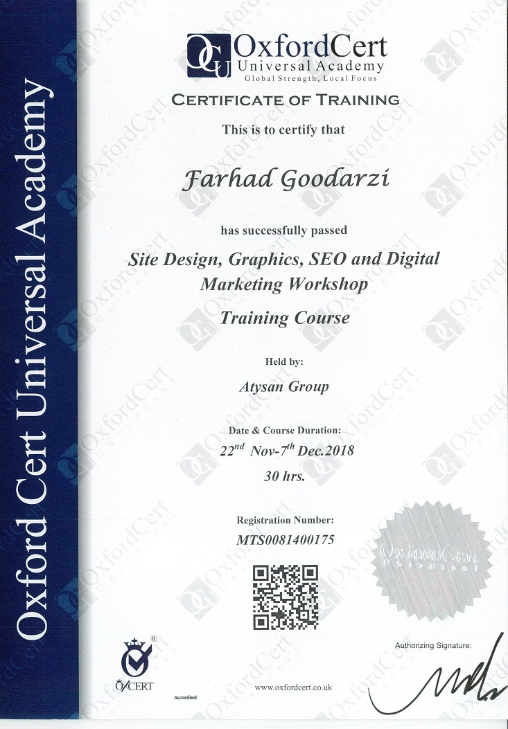 مدرک از آکسفورد سرت در طراحی سایت و سئو از شرکت آتیسان.